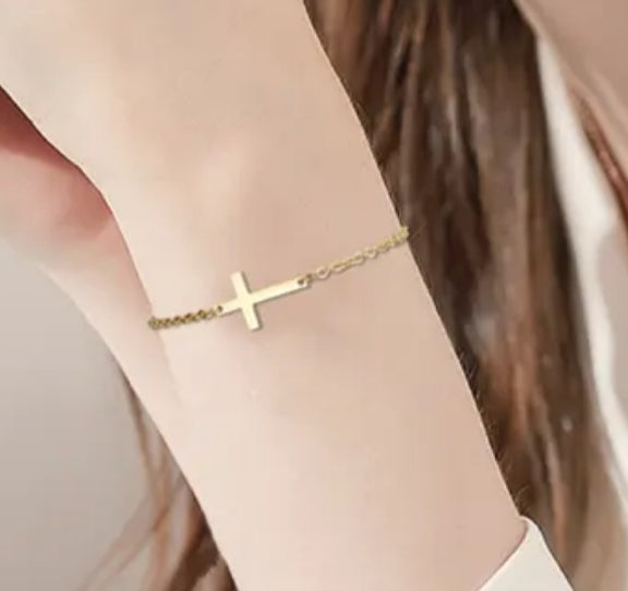 Adjustable Cross Bracelet or Anklet – Stainless Steel & Gold