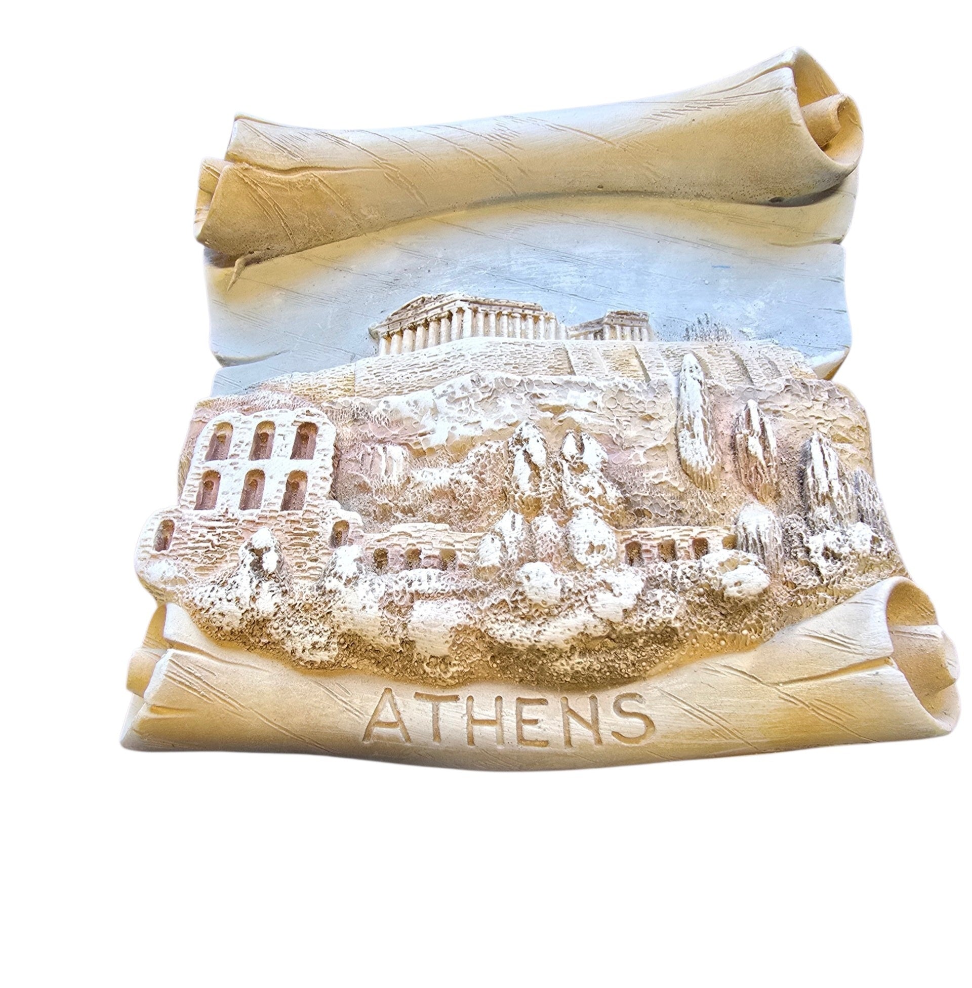 Capture the majesty of ancient Athens with this beautifully crafted alabaster plaque, imported directly from Greece. Designed in the style of an unfolding ancient scroll, it features a raised relief depiction of several iconic Acropolis landmarks—the Parthenon, the Odeon of Herodes Atticus, and the Propylaea—all rendered with remarkable depth and detail.