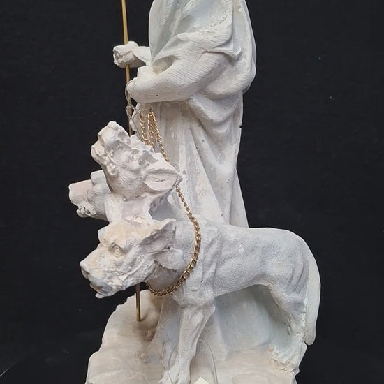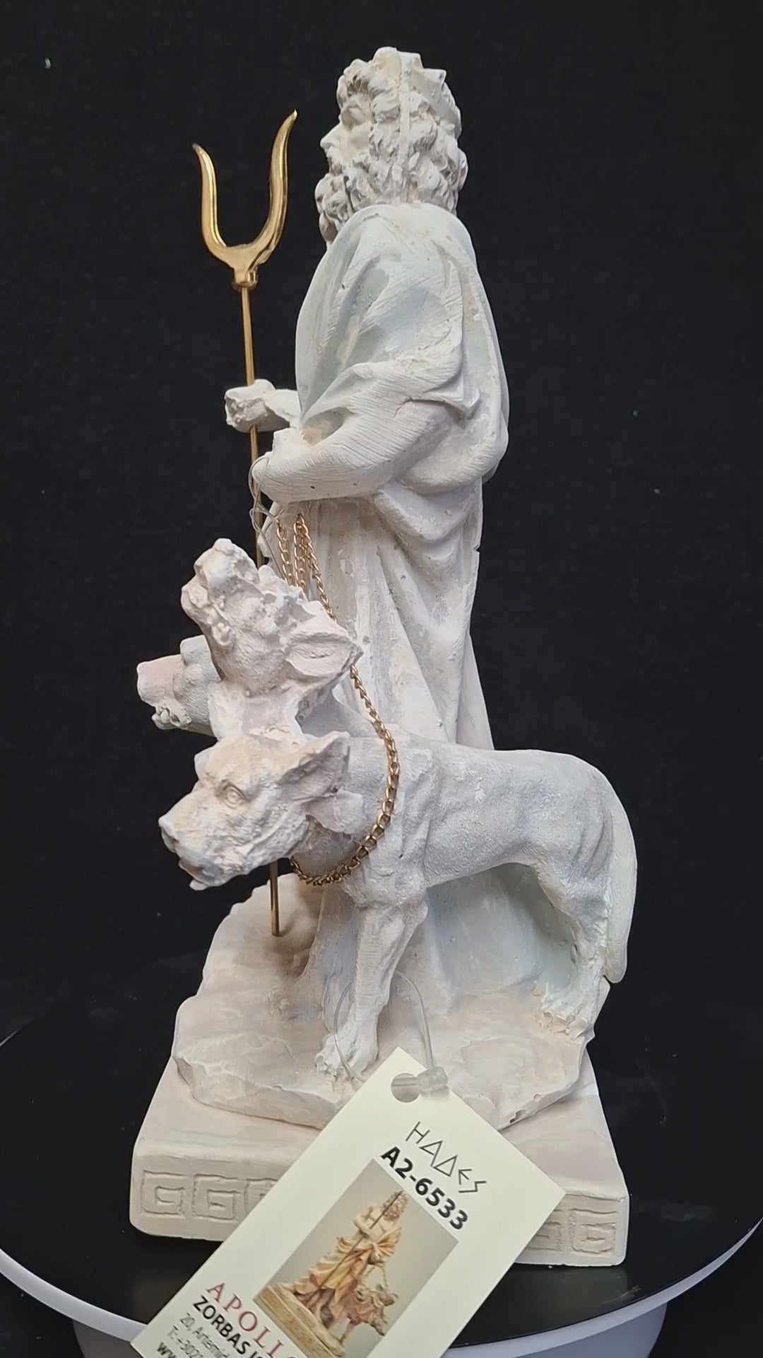 Bring the power and mystery of Greek mythology into your space with this striking alabaster statue of Hades, God of the Underworld, shown alongside his legendary three-headed dog, Cerberus. Cerberus guarded the gates of the Underworld, preventing the dead from leaving and the living from entering—an enduring symbol of protection, loyalty, and divine authority.