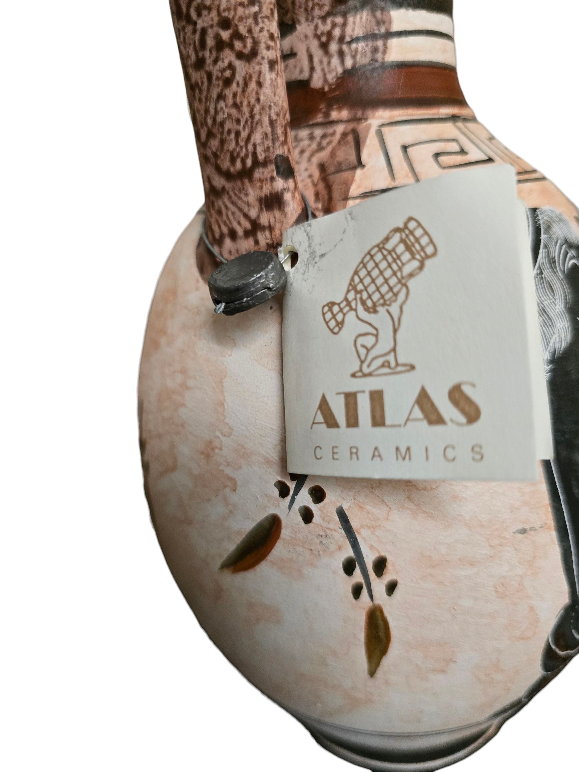 This exquisite vase is a true work of art, imported directly from Athens, Greece. Each piece is handmade and hand-painted by skilled artisans, capturing the beauty and tradition of ancient Greek pottery.