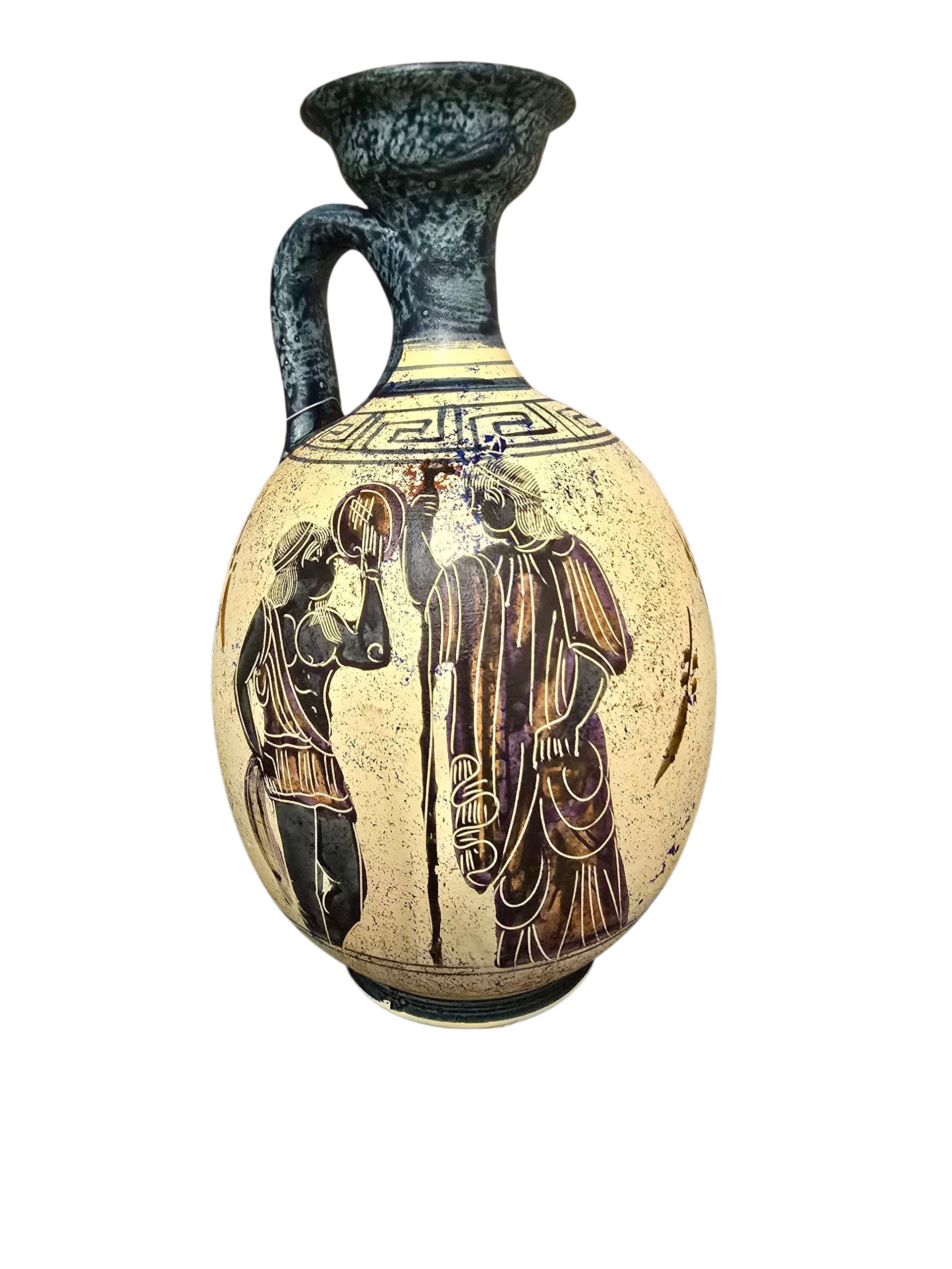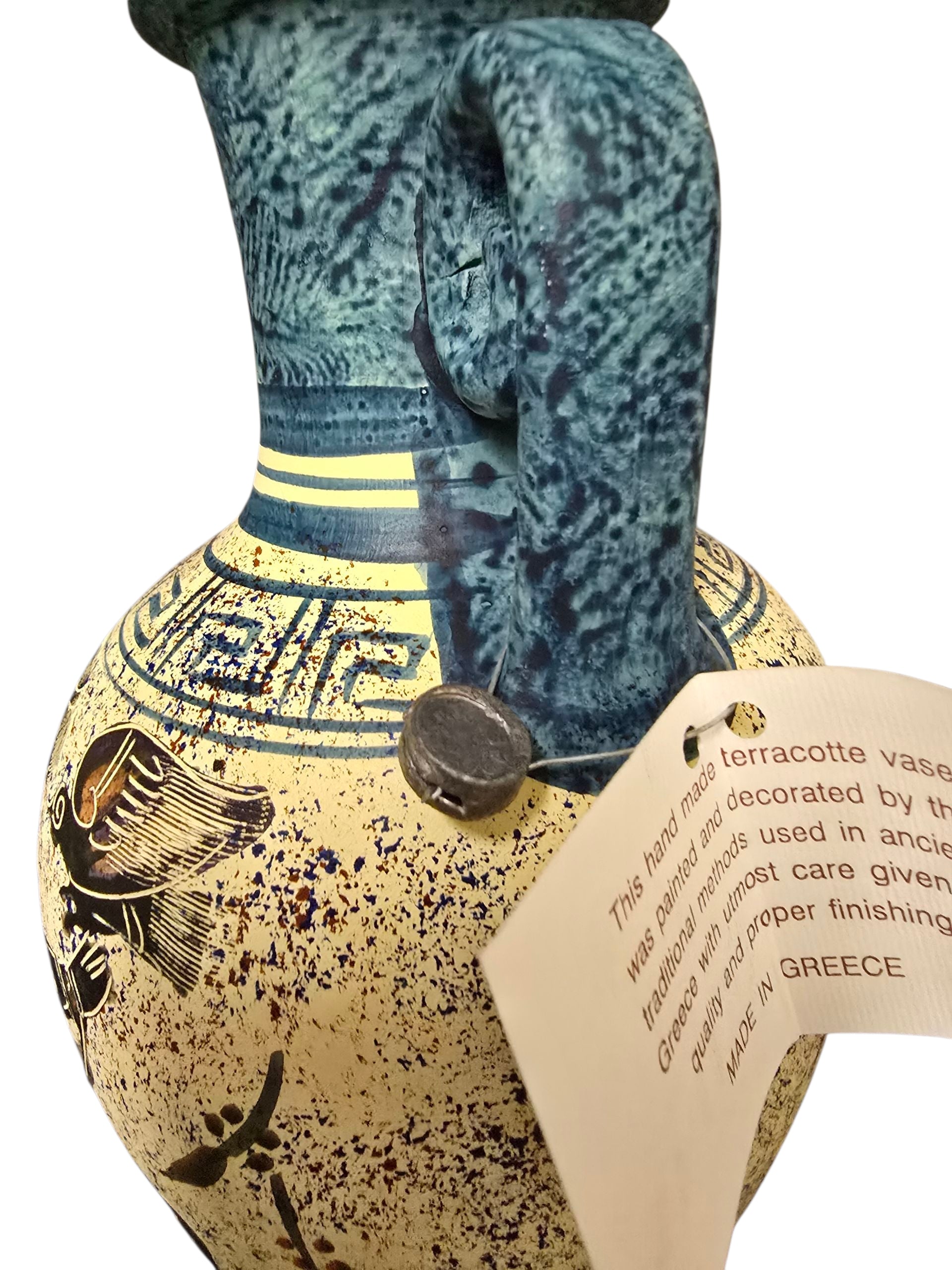 This exquisite vase is a true work of art, imported directly from Athens, Greece. Each piece is handmade and hand-painted by skilled artisans, capturing the beauty and tradition of ancient Greek pottery.