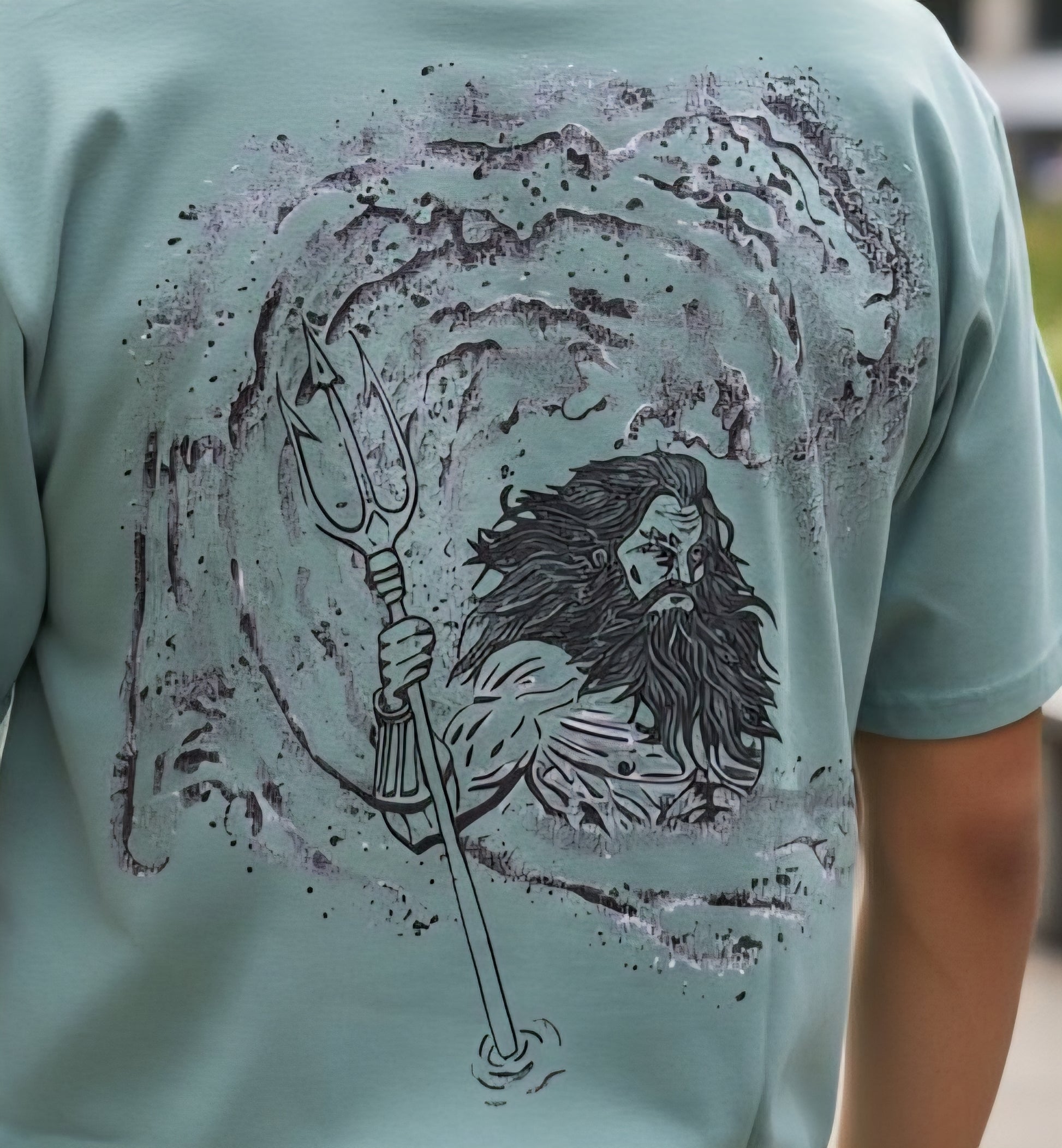Ride the waves of style with this striking Poseidon tee! Featuring a powerful image of Poseidon rising from the sea on the back and his trident entwined with an octopus tentacle on the front. Made for comfort and bold expression. Available in adult sizes Sā3X.