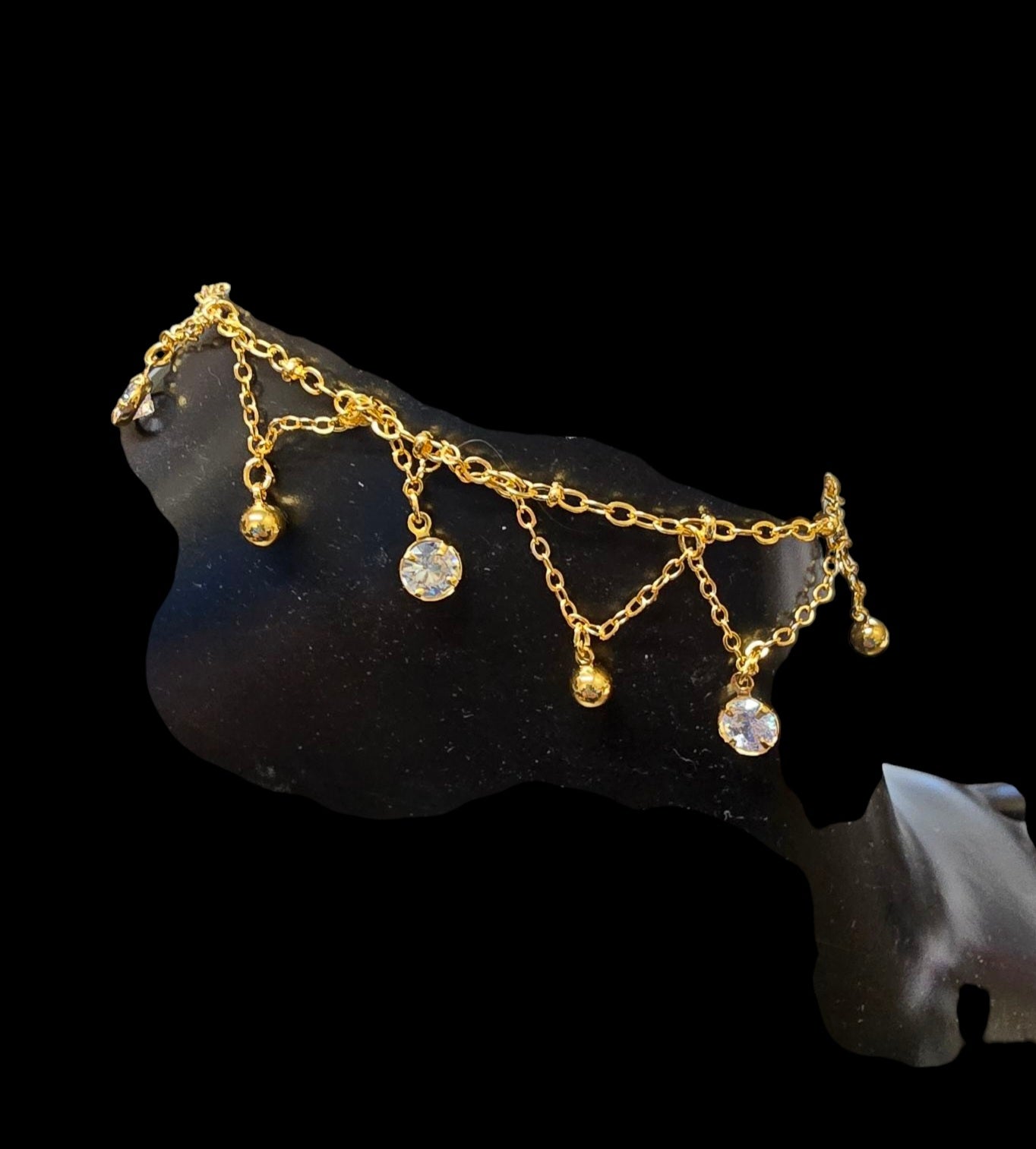 Add a touch of sparkle to your every step with this simple yet elegant anklet. Crafted in radiant 18K gold plating, it shimmers with delicate zircon stones that catch the light beautifully. The adjustable design ensures a perfect fit, making it as comfortable as it is captivating—a timeless piece that pairs effortlessly with any look.