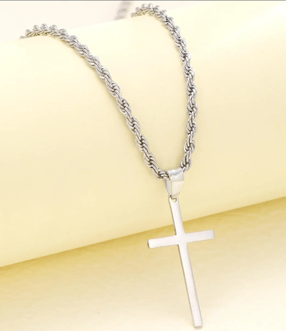 Timeless and sleek, this stainless steel cross pendant is a classic symbol of faith and strength. The pendant measures 4 cm (1.6 inches) in length and hangs gracefully from a durable 22-inch rope chain. Made from high-quality stainless steel, it’s tarnish-resistant, lightweight, and perfect for everyday wear. Suitable for both men and women, this piece offers a clean, modern look with enduring meaning. Ideal as a gift or a personal keepsake.