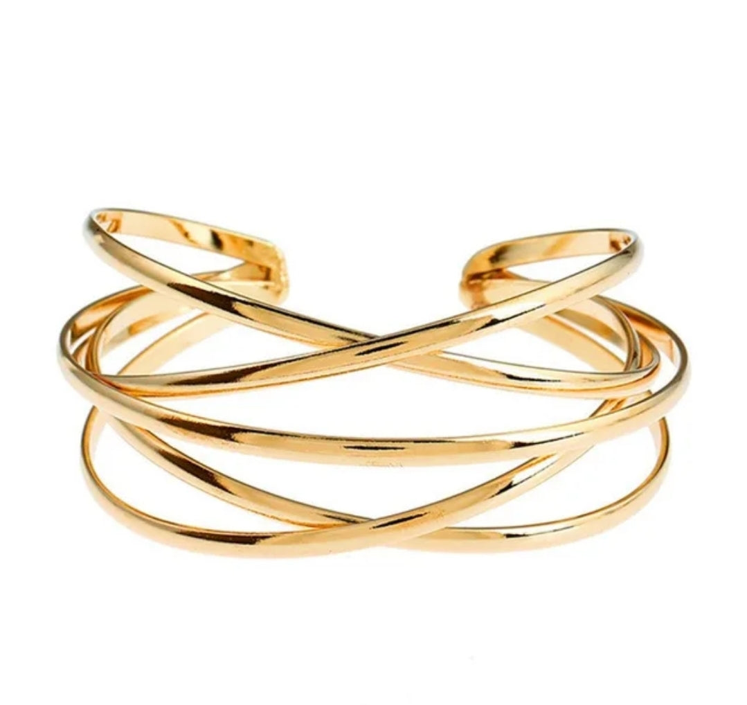 This Wide Cuff Bracelet is a bold and stylish statement piece, featuring a multi-layer cross wire design for a modern, sophisticated look. Available in gold or silver-plated finishes, it adds a touch of elegance to any outfit. Designed for versatility, this trendy bracelet is perfect for both casual and formal wear. Its wide cuff structure provides a comfortable yet eye-catching fit, making it an essential accessory for any jewelry collection.